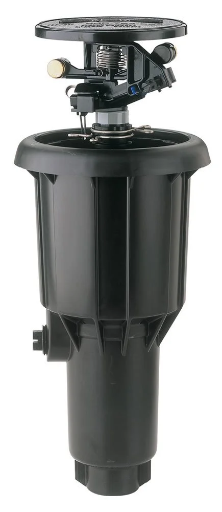 Rotary sprinklers are generally gear driven, though impulse sprinklers still exist, seemingly being phased out by manufacturers as costs forthese are rising and gear-drives dropping. What these 2 have in common is they turn and are generally made for larger areas of lawn, at least 18 ft or more. Impulse sprinklers sit in cans and are driven by a flapper arm. While their advantage over gear drives is that they can be somewhat disassembled and repaired or cleaned, they require much more maintenance, especially near bark beds, as the mechanical elements are open and not enclosed in the can and debris enters jamming the workings of the head. Some claim too that the close watering near the head enables further spacing of heads. Also, these impulse heads can pass dirty water much easier without gumming up the mechanics of the sprinkler head.